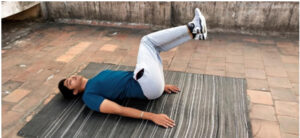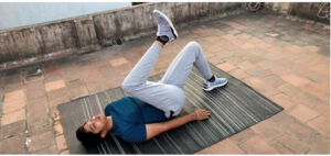 - Raise the right leg and bend it such that the right knee is close to your chest.