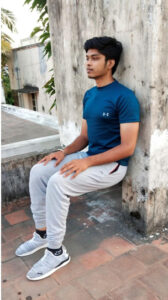 - Slide down the wall slowly till your knees are bent at a right angle, as if you are sitting on a chair